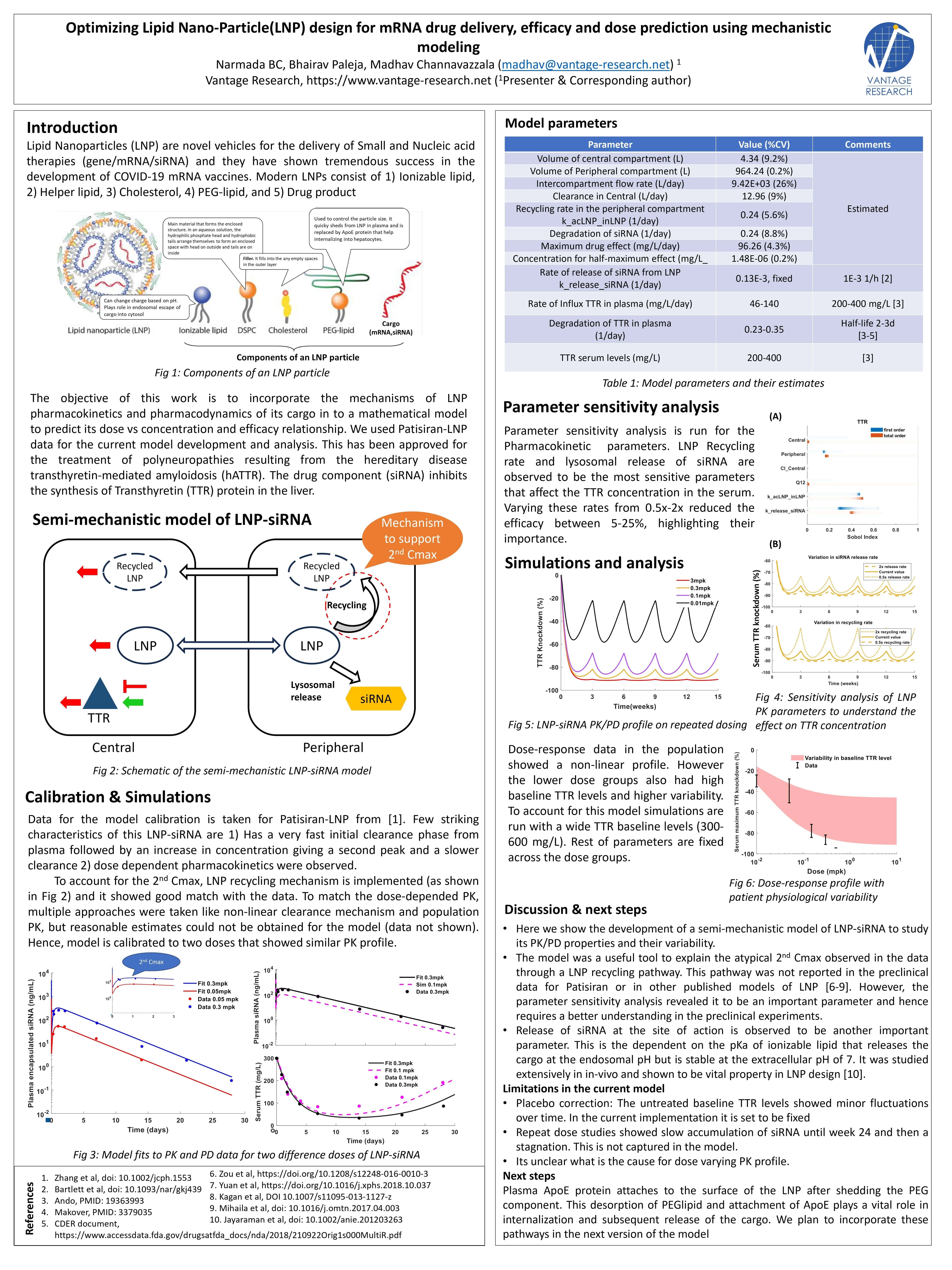 Optimizing Lipid Nano-Particle(LNP) design for mRNA drug delivery, efficacy and dose prediction using mechanistic modeling