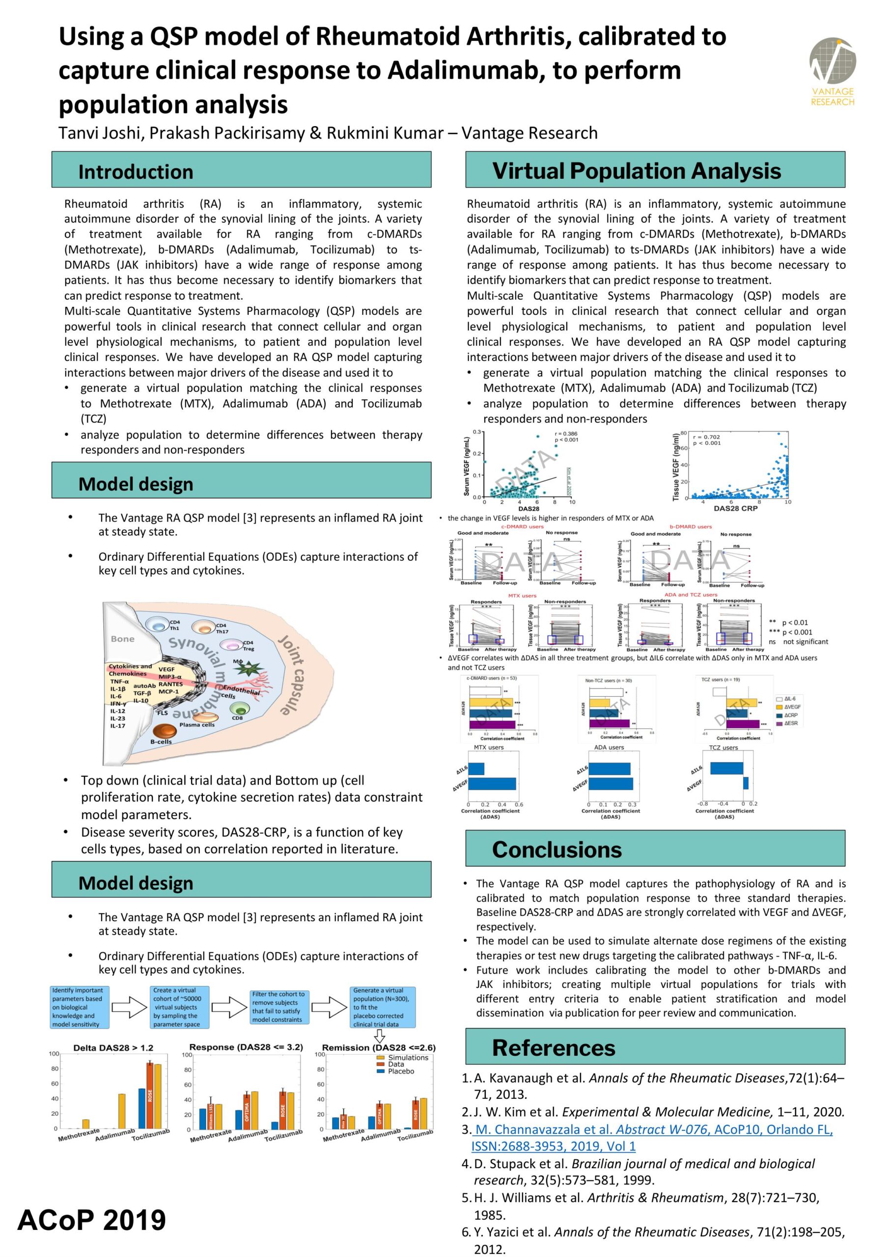 Using QSP model of Rheumatoid Arthiritis, calibrated to capture clinical response to Adalimumab, to perform population analysis