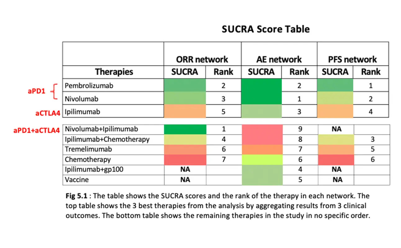 Network Meta-Analysis to evaluate comparative efficary, progression free survival and tolerability among Immune Checkpoint Inhibitor Therapies (CIT) in Meanoma patients